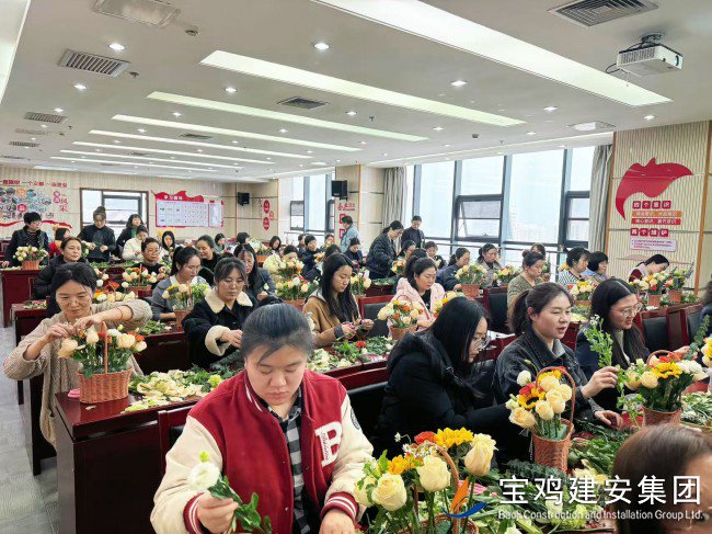 為慶祝第115個(gè)“三八”國際勞動(dòng)?jì)D女節(jié),3月6日下午,公司黨委、工會(huì)和團(tuán)委聯(lián)合舉辦了“魅力巾幗 花漾生活”創(chuàng)意插花活動(dòng)。 此次活動(dòng)旨在提升女職工的幸福感,陶冶情操,展示公司女員工的精神風(fēng)貌,進(jìn)一步團(tuán)結(jié)和激勵(lì)廣大女員工以更高的熱情投入工作?;顒?dòng)在公司建安大廈22樓黨員活動(dòng)室舉行,來自機(jī)關(guān)各部室和基層各單位的60多名女職工踴躍參與。